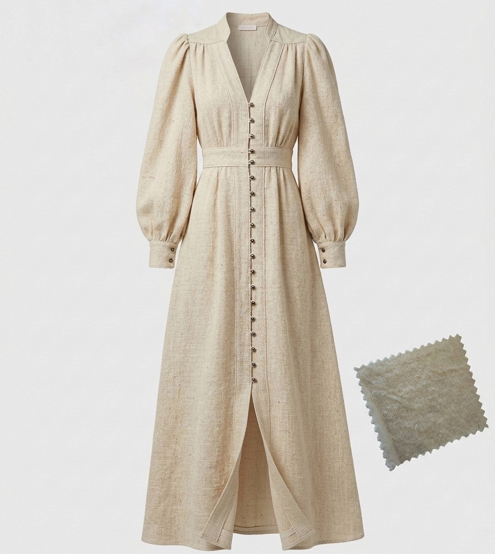Redescoperă plăcerea de a purta materiale care respiră odată cu tine. Varkala. Această rochie midi din material natural reprezintă echilibrul perfect între estetica romantică și confortul cotidian, fiind piesa de rezistență a oricărei garderobe feminine sustenabile.